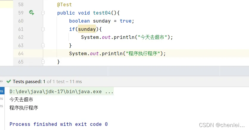 需求:如果今天是星期日,我们就去超市,如果不是星期日就去市场。