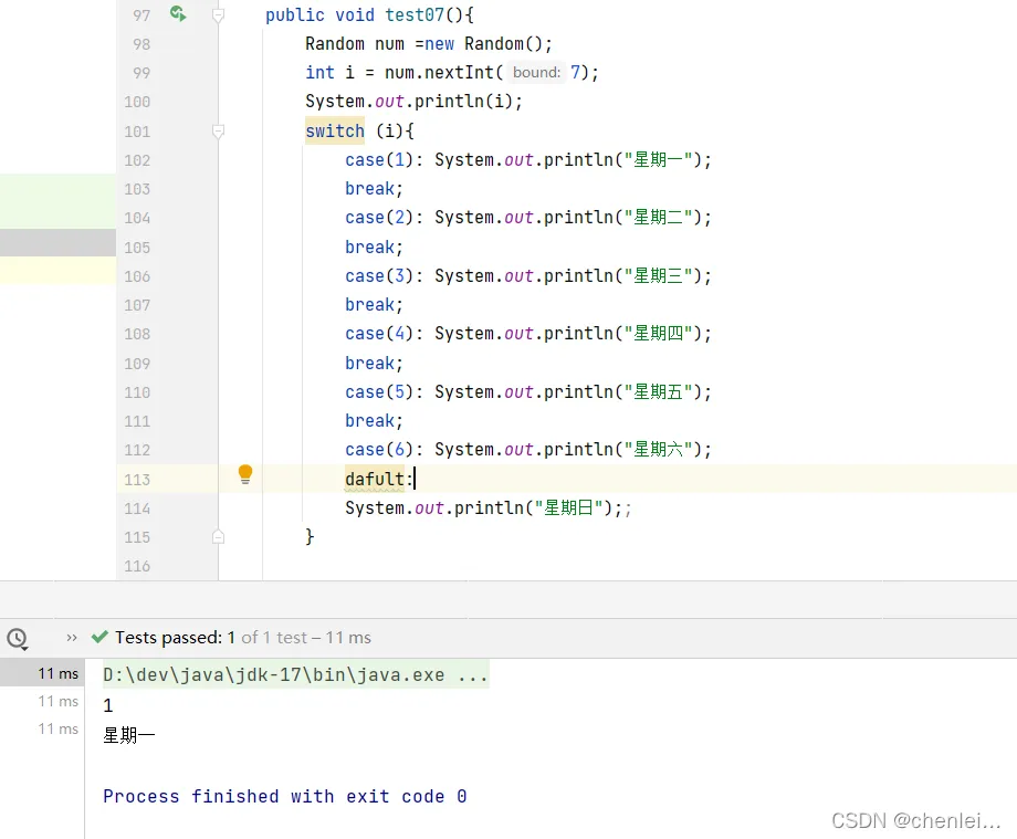 需求:随机生成一个数字 ,如果这个数字是“0”,那么就输出“星期日”,如果是“1”,就输出“星期一”,以此类推。(还是上面的例子)
