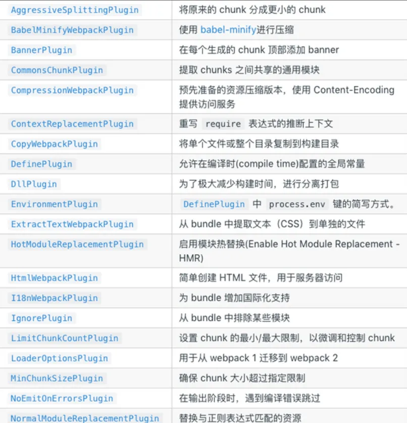 Plugin(Plug-in)是一种计算机应用程序,它和主应用程序互相交互,以提供特定的功能。是一种遵循一定规范的应用程序接口编写出来的程序,只能运行在程序规定的系统下,因为其需要调用原纯净系统提供的函数库或者数据。webpack中的plugin也是如此,plugin赋予其各种灵活的功能,例如打包优化、资源管理、环境变量注入等,它们会运行在 webpack 的不同阶段(钩子 / 生命周期),贯穿了webpack整个编译周期。