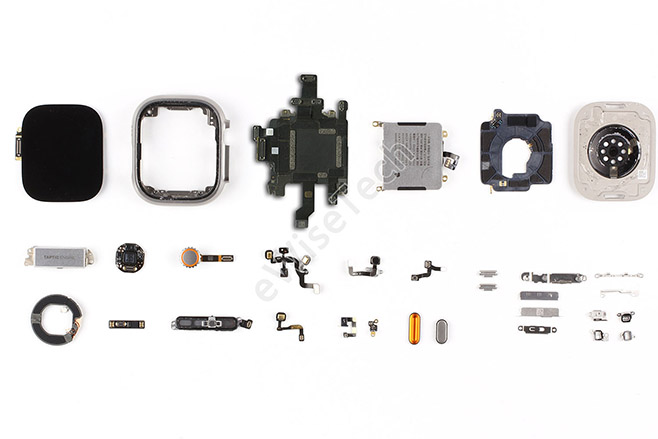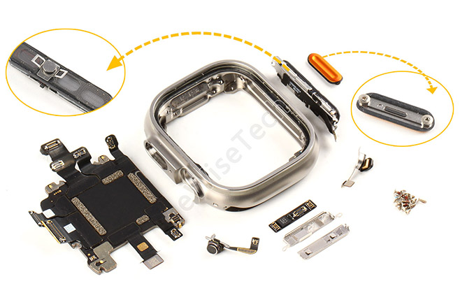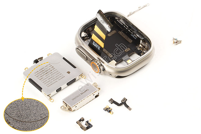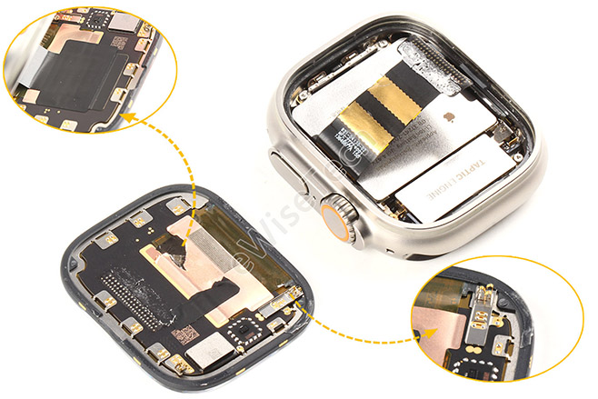 Watch Ultra手表主板采用SIP系统级封装,IC主要集中在主板背面,