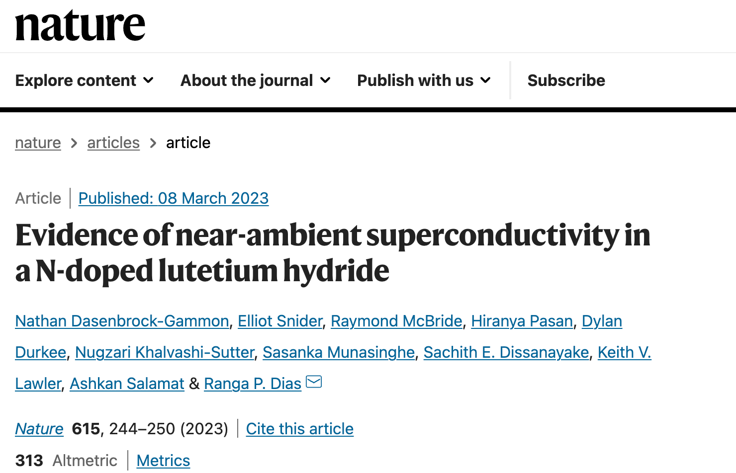 在该论文发表后不久,就有多个研究小组对其提出了质疑,并试图重复该实验。他们发现该论文存在很多问题,比如数据不一致、分析方法不合理、结论不可靠等。他们认为该论文没有提供足够的证据来支持其室温超导性的主张,并且怀疑该材料是否真的存在。他们向《Nature》杂志提交了评论文章和反驳意见,并要求作者提供更多细节和原始数据。