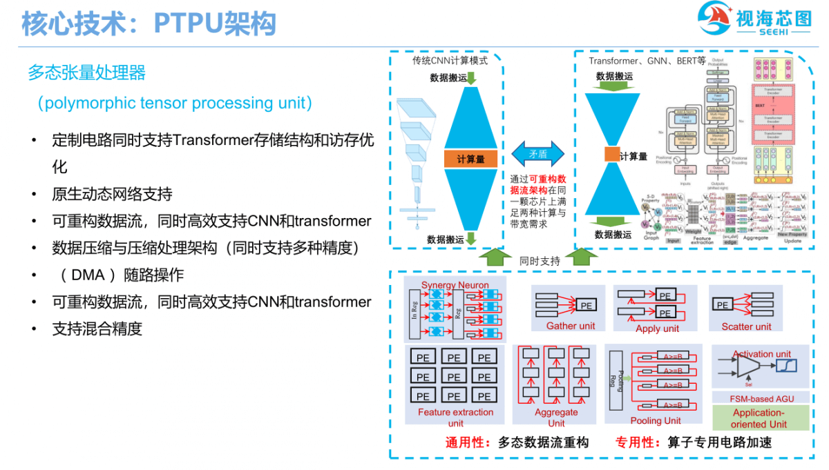“动态网络对Transformer是特别重要的支撑。由于需要兼顾两种架构,需要设计一个可重构的数据流来支持,因为两种架构的数据流通量是不一样的。”他说到。