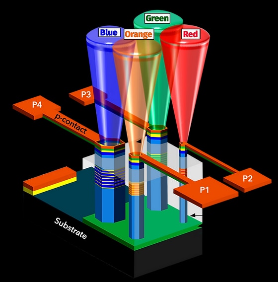 研究人员正致力于开发首款GaN nanoLED ,瞄准可见光RGB显示器和不可见光UVC消毒灯等应用。(来源:NS Nanotech)