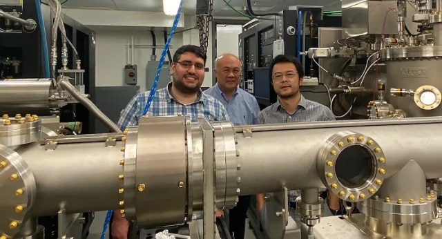 NS Nanotech Canada资深科学家David Laleyan (左) 、NS Nanotech Canada首席运营官Derrick Wong (中)和麦基尔大学教授赵松睿(右) ,在赵教授的研究实验室使用nanoLED制造设备。(来源:NS Nanotech)