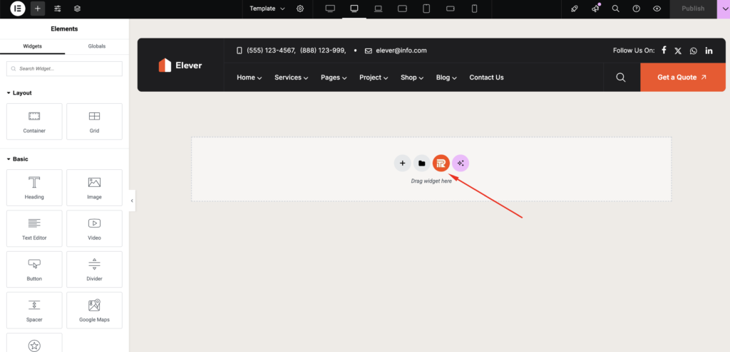 - In the Elementor editor, click the ReacThemes Template icon to open the Elever Template Library.