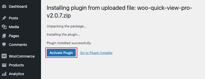 4. After successfully installing the plugin, click “Activate Plugin “ to activate the plugin.