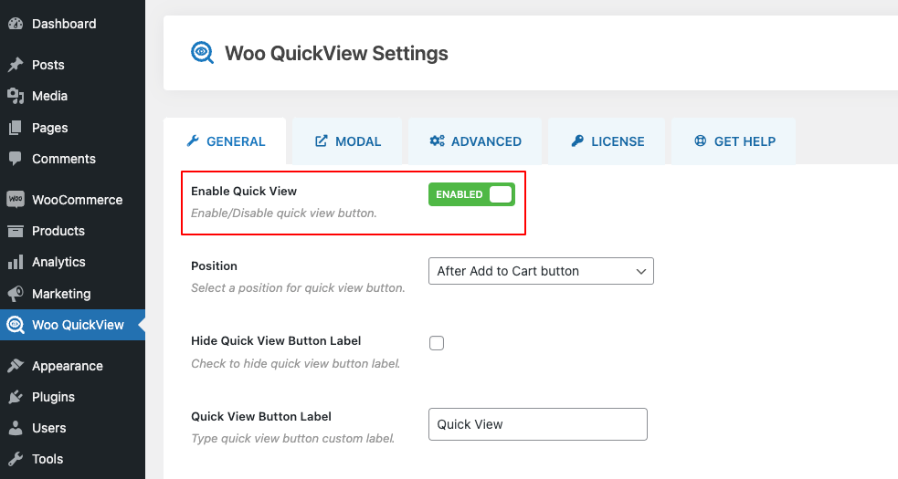 Simply, Navigate to Quick View Menu > General > Enable Quick View.