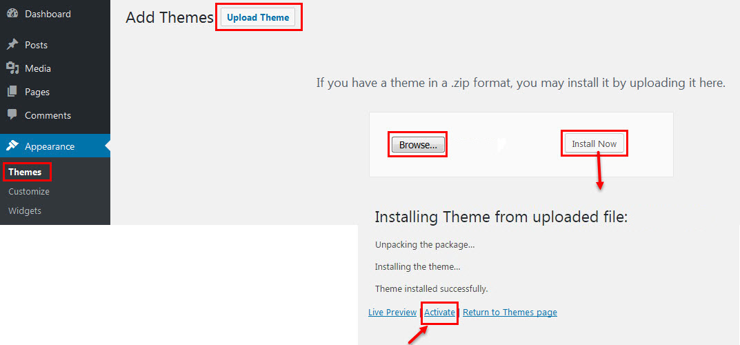 1. Install Theme Via Wp
