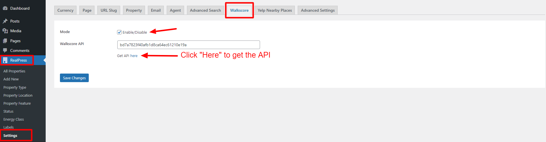 Click “Here” to get the API