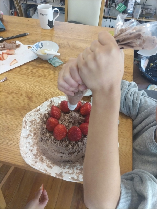 娘たちとの約束通り、クリスマスケーキを一緒に作る。