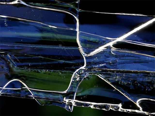 氷の端が鋭利に見えて、光を反射している三枚は氷を二枚重ねての撮影。