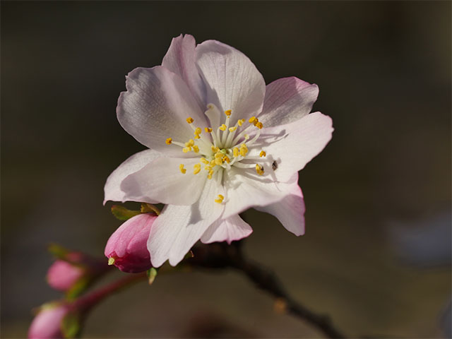 本殿エリアの十月桜から、咲き出しの物を探して一枚です。