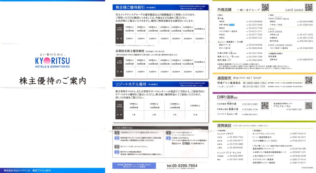 ドーミーインや共立リゾートを日頃から利用している方にとっては、実用度が高い優待内容です。