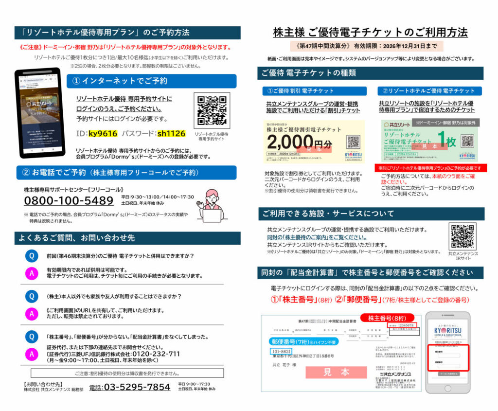 共立メンテナンスでは、毎年3月末・9月末の権利確定日に以下の株主優待がもらえます。