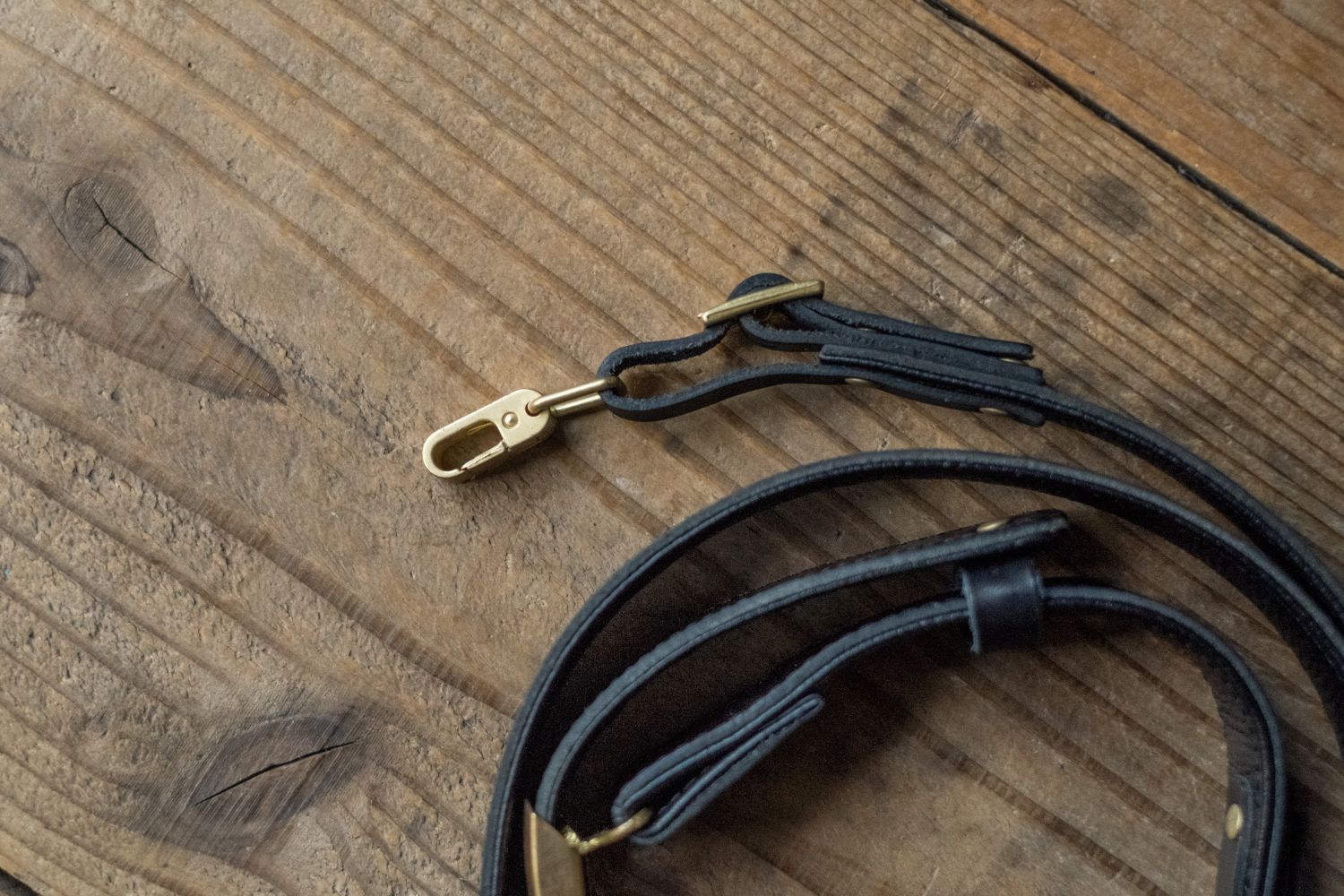 金具は色ムラを残してアンティーク感を出した真鍮素材を使用。カメラ本体に金具がぶつかるのを防ぐアテ革はdripでも人気の高い熟成レザーを使用しました。