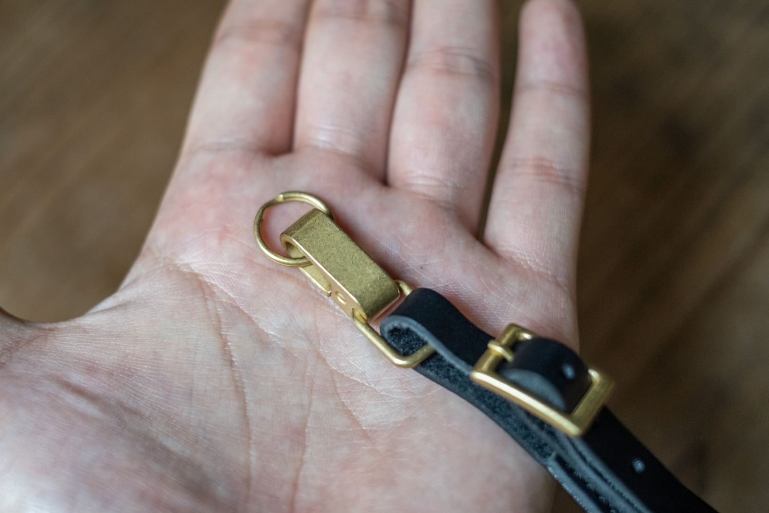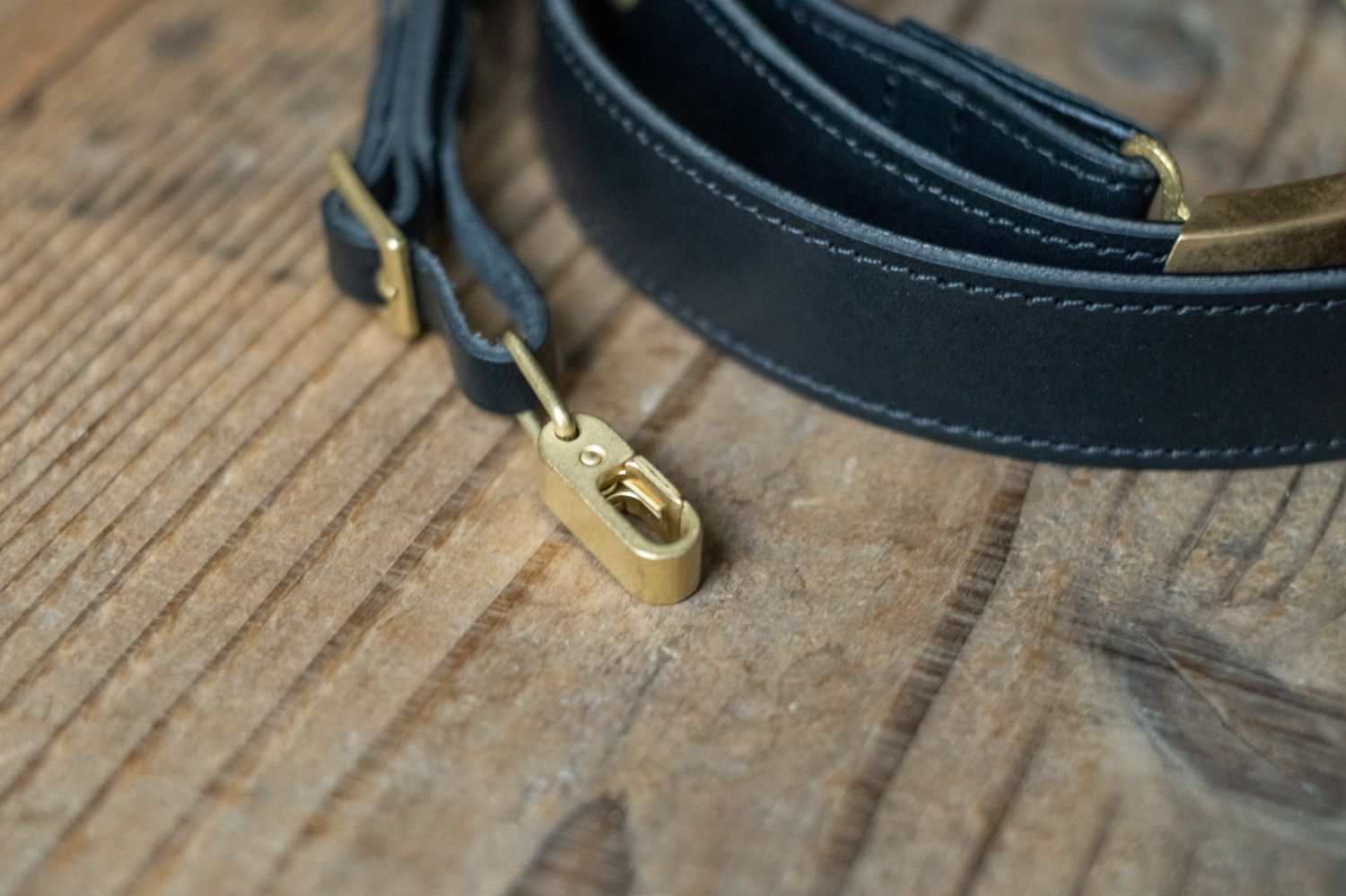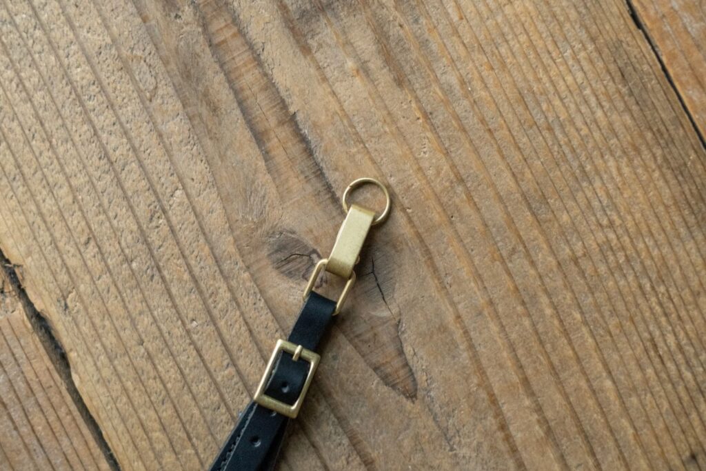 バックルや留め具に使用している真鍮素材はあえて塗装をせず、削り出しの無垢な状態にしています。