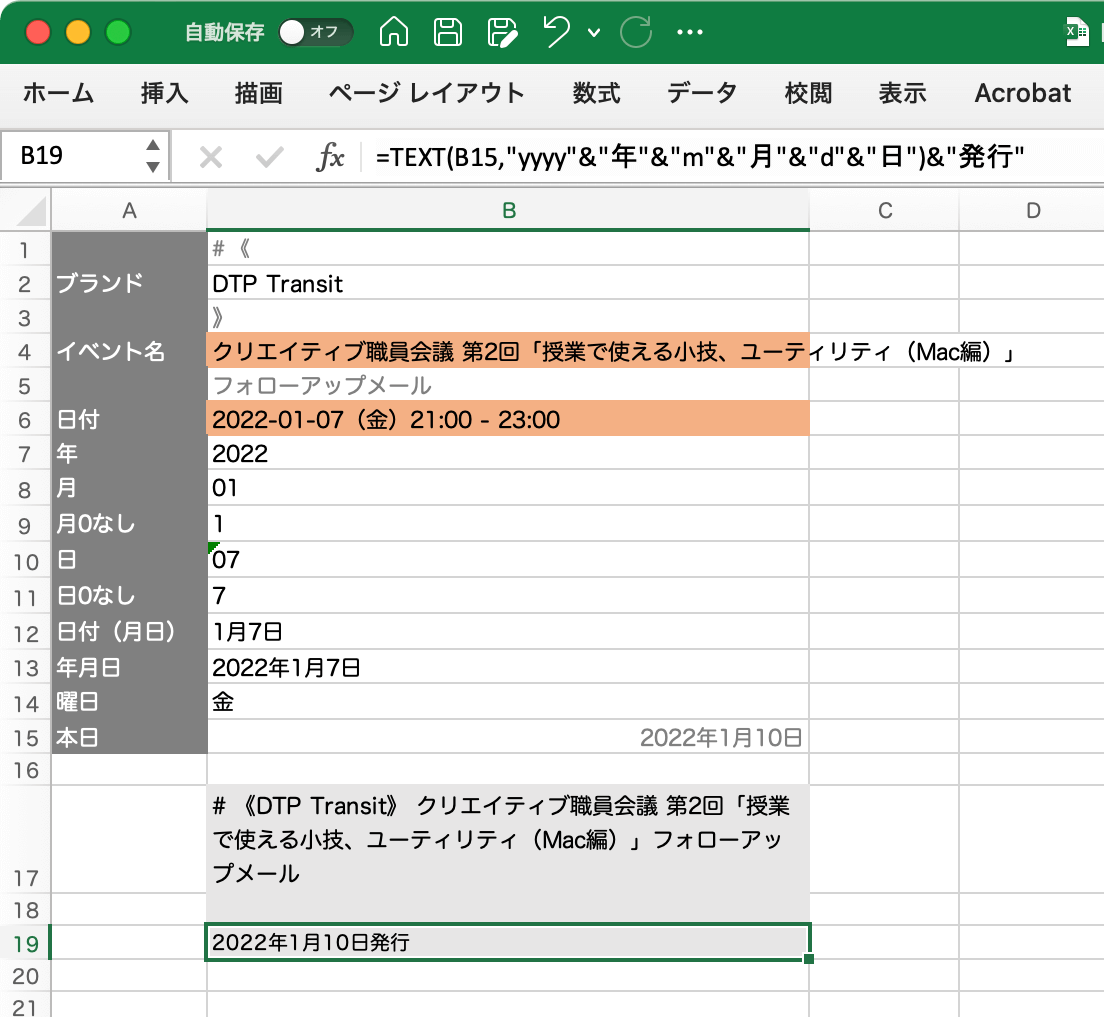 =TEXT(B15,"yyyy"&"年"&"m"&"月"&"d"&"日")&"発行"