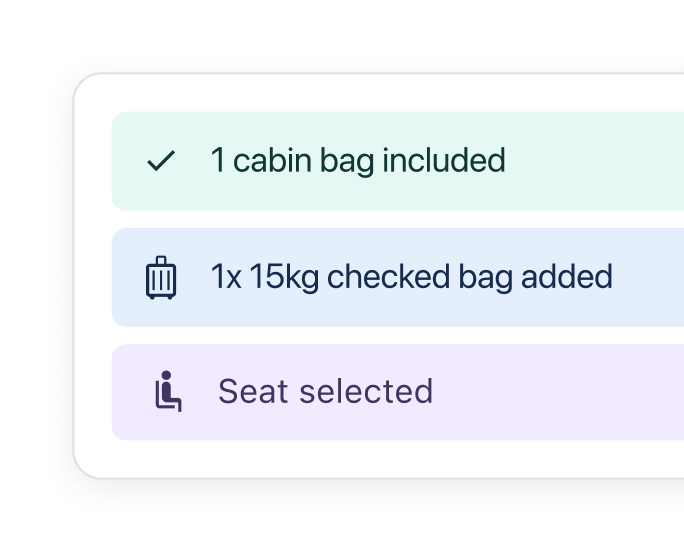 Build an intuitive flight search, offer loyalty programme perks, add seats and bags, manage your orders, and more.