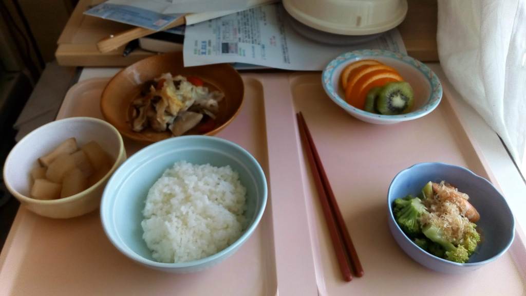 さて、この病院は曹洞宗『永平寺』から近く、田んぼや山並み、風景からも『禅』を感じる。私の7階にある4人部屋の窓からは永平寺があると思われる山も見渡せる。私の検査患部はまだ相当痛いが、それらが幾分か気持ちを落ちつかせてくれた。そして病院食だ。一般的に病院食は「まずい」と言われているが、それは薄味だからだ。しかし、ここでの食事は風味がきいていて素材の味が出ている。何といっても『炊き立てのご飯』がおいしい。この風景を見ながらの食事は悪くない、患部の痛みを除けばだが。同じ病室の患者もプラ製の箸とお椀でカチャカチャ音立てて食べている。私は心の中で「美味しいよね、味無いけど」と話しかける。