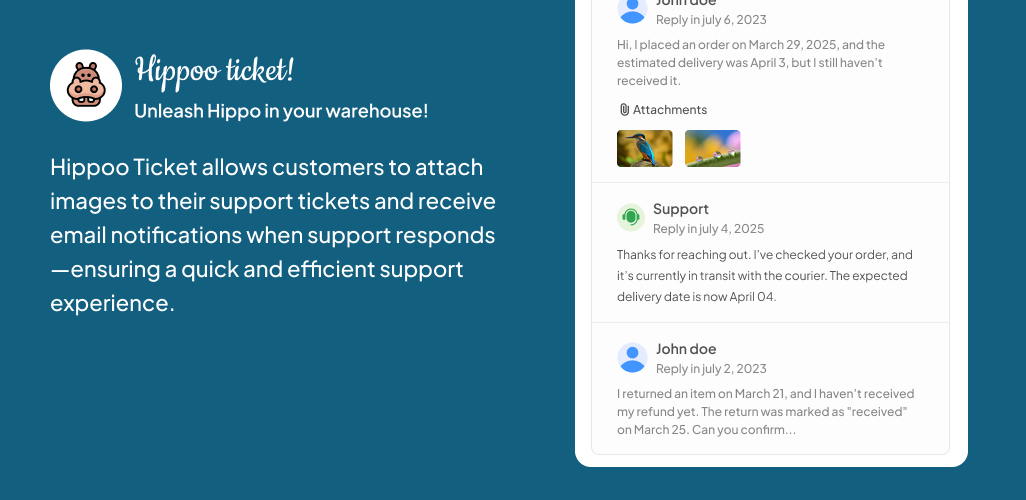 - Mobile and Desktop Access: Access and respond to support tickets using the WordPress dashboard or the Hippoo WooCommerce app.