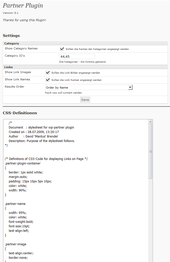 - Configure the desired output in the wp-partner plugin configuration page.