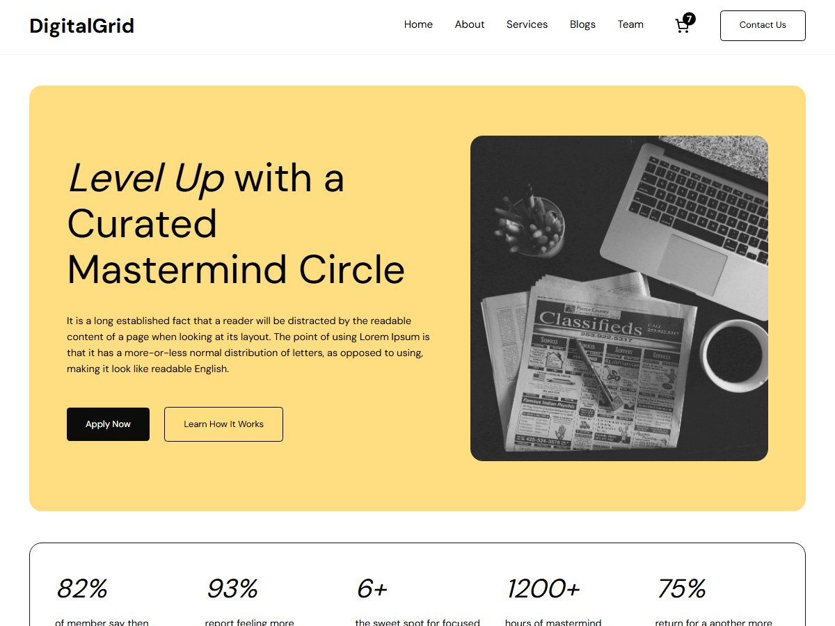 DigitalGrid is a high-performance child theme of DigitalGrove, crafted for businesses, consulting firms, and SEO agencies that demand flexibility and full-site editing (FSE) capabilities. Seamlessly integrated with Gutenberg and WooCommerce, DigitalGrid offers effortless customization and robust eCommerce features. Its modern, block-based design, built-in SEO optimization, and compatibility with Contact Form 7 make it the ideal solution for showcasing your services, engaging clients, and expanding your digital footprint. Elevate your brand with DigitalGrid—where innovation drives results. Demo: https://demos.themegrove.com/digitalgrid/
