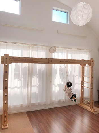 公園にあるうんていに比べると握り棒の間隔は狭いです。