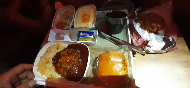機内食はサンドイッチの軽食と チキン