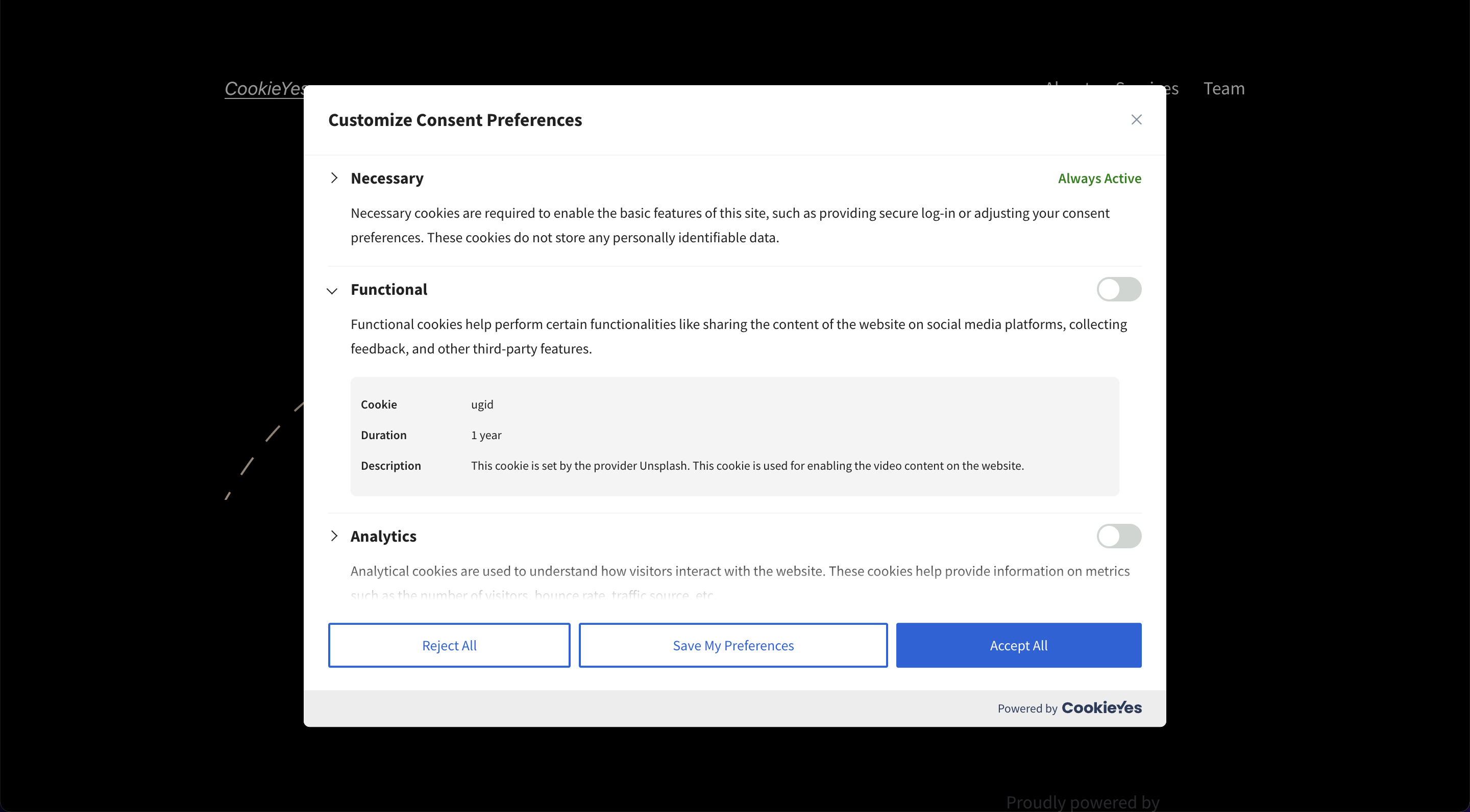Preference Center: Let users manage cookie preferences by category (analytics, marketing, etc.).