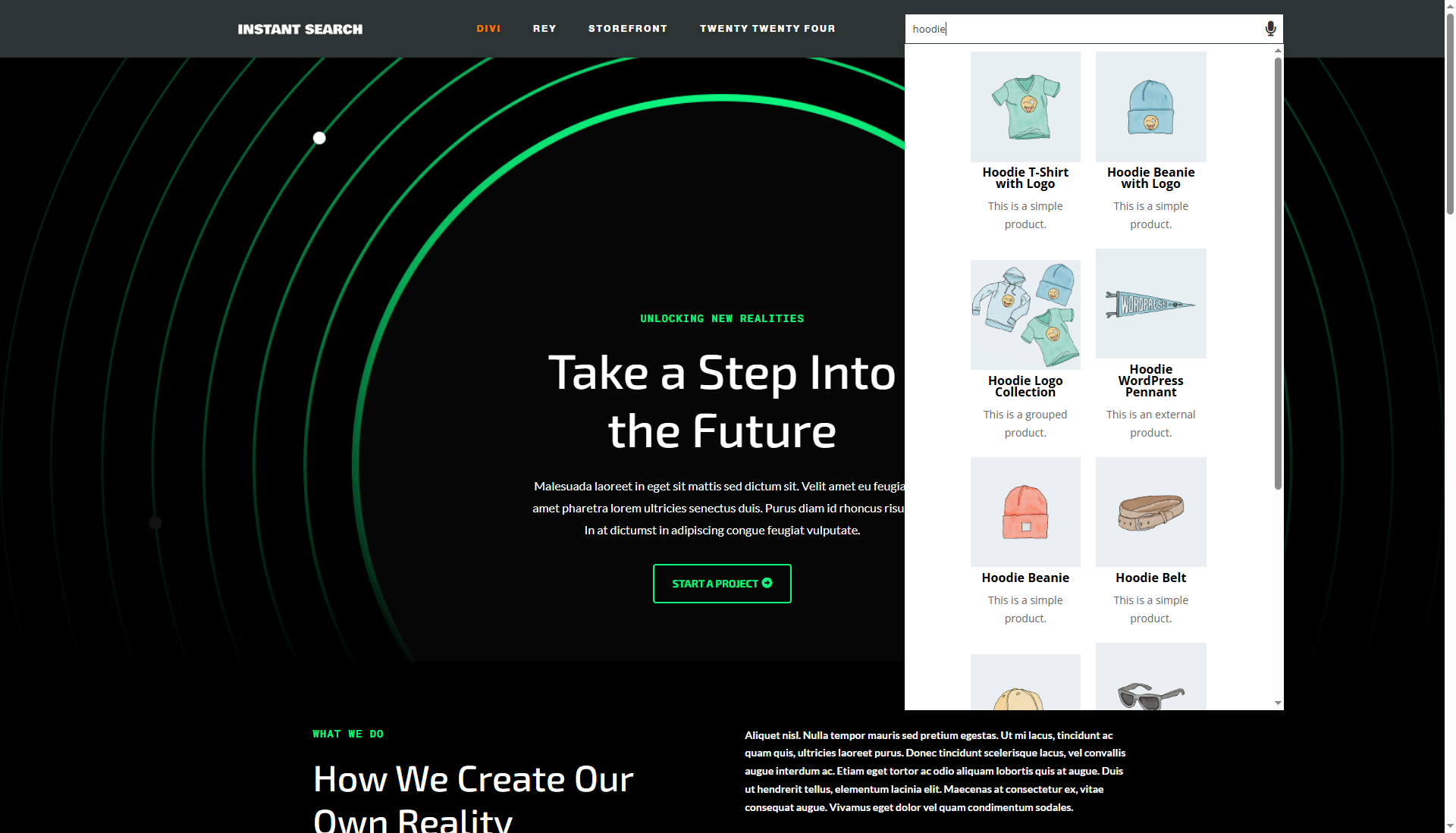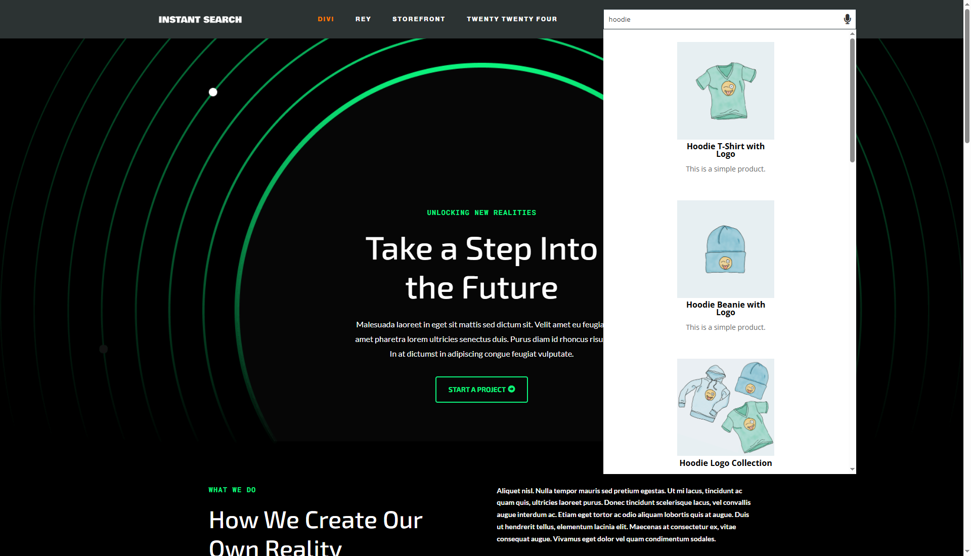 [instant_search]can be placed in any post, page, or text widget. For best visibility, I recommend placing the shortcode in the header of a website. Either with the help of a page builder (Divi) or placing the shortcode in the header file template of the active theme:<?php echo do_shortcode('[instant_search]'); ?> -