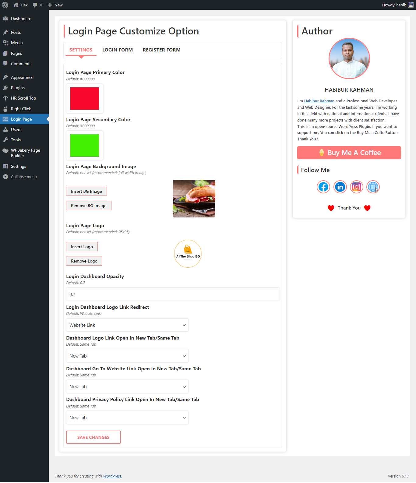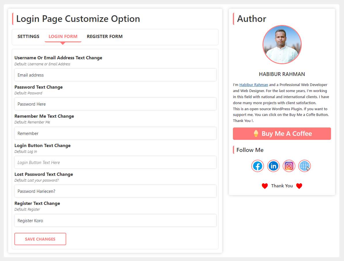 - You can change everything from here like change background image, logo change, all links change, text change, login and total register page customize.