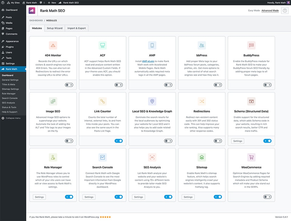Rank Math has been designed with a module-based system, each of which can be enabled or disabled as per your needs, giving you extra speed and control. -