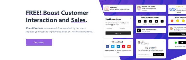 The SocialProofus WordPress plugin empowers website owners to seamlessly integrate social proof notifications into their site, enhancing credibility and trust among visitors. With customizable notification options, including recent sales, sign-ups, and more, users can effortlessly showcase real-time activity and engage with their audience effectively. Boost conversions and build customer confidence with SocialProofus – the ultimate social proof solution for WordPress websites.