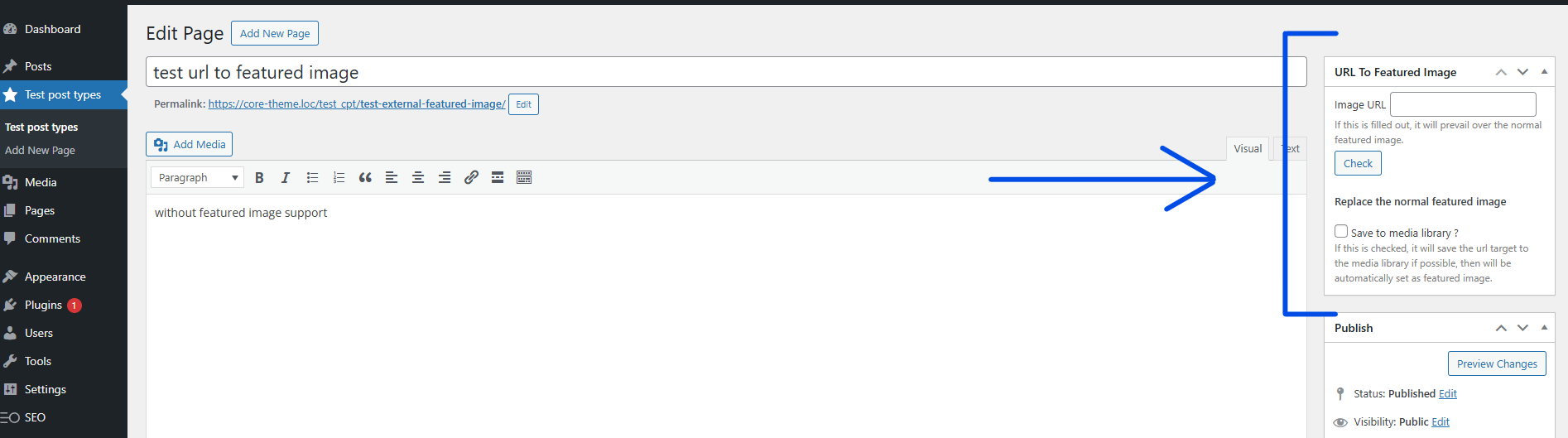- Edit any post or page and enter an image URL in the “URL To Featured Image” field.