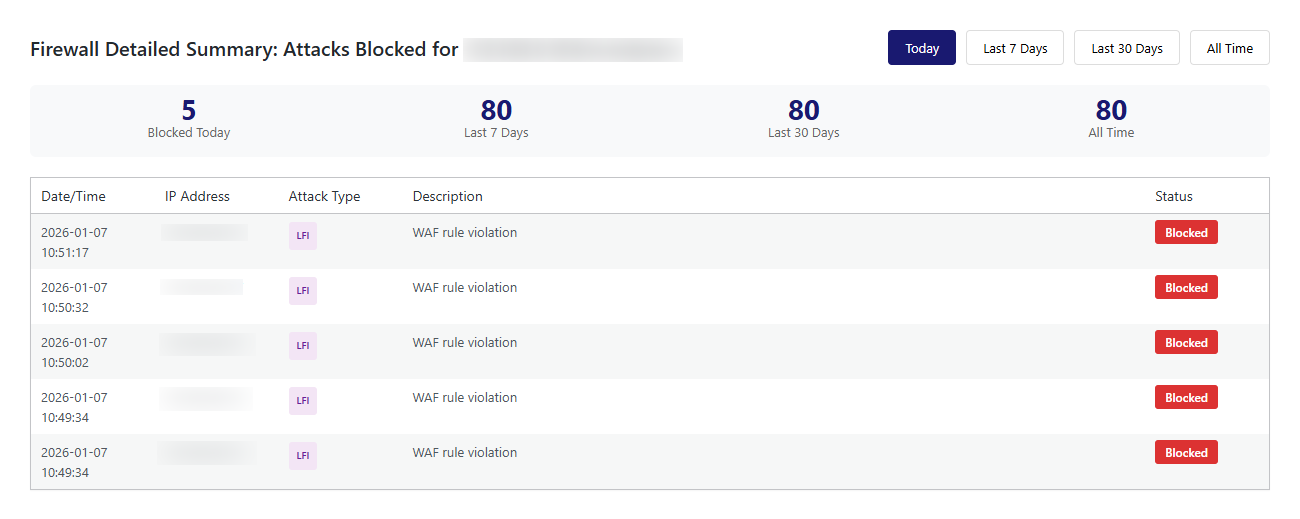 - IP Blocking – Block individual IPs or entire IP ranges using CIDR notation
