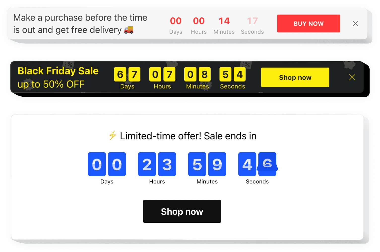 The Countdown Timer is a smart HTML app that creates urgency and drives action—perfect for flash sales, product launches, and limited-time deals.