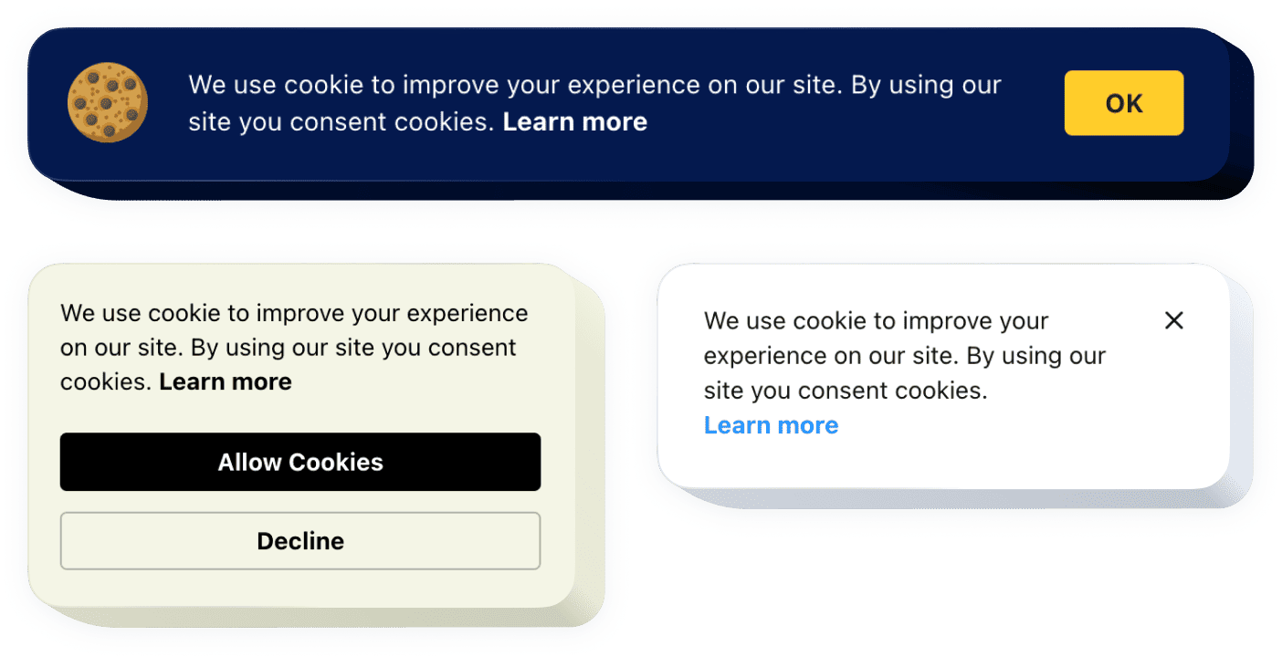 The Cookie Consent is an essential HTML app that helps you notify visitors about cookie usage and collect consent in a clear and user-friendly format.