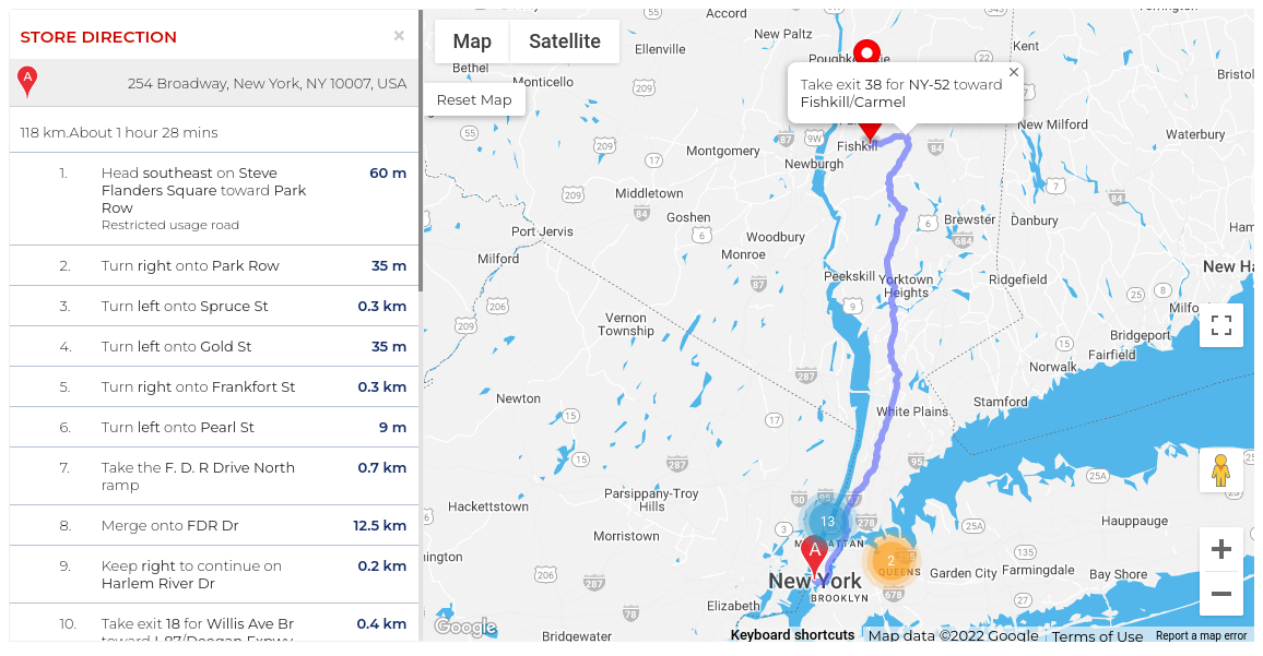 Allow your customers to find the nearest store with a single click. The Geo-location feature automatically detects their current location and displays the closest stores on the map.