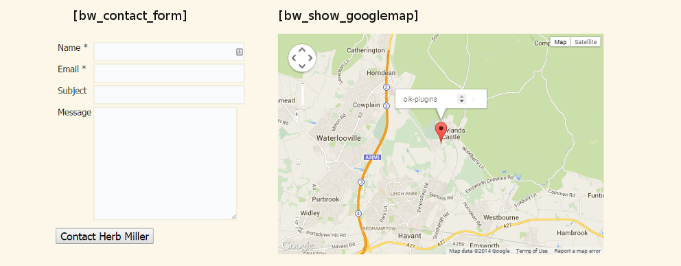 [bw_contact_form] – Contact form and [bw_show_googlemap] – Google Map