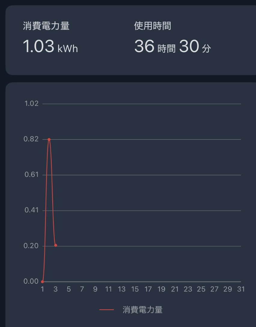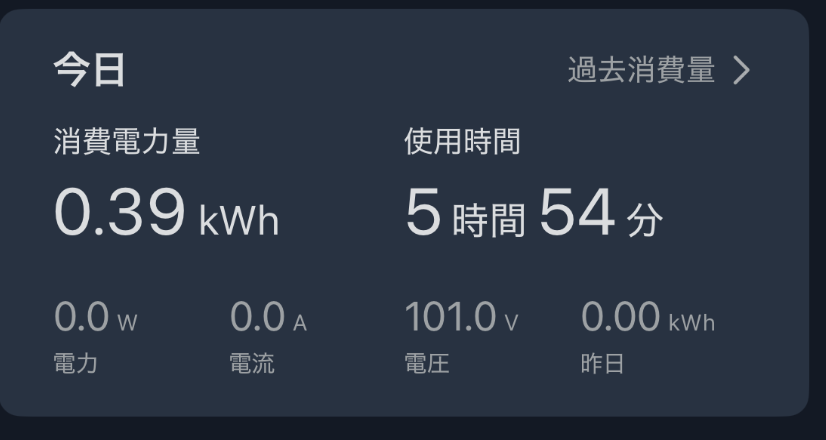 スイッチボットのスマホアプリから電気消費量等が確認できるのです。