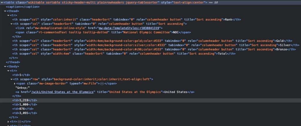 This is the rendered HTML version of a table that you’re used to seeing on Wikipedia: