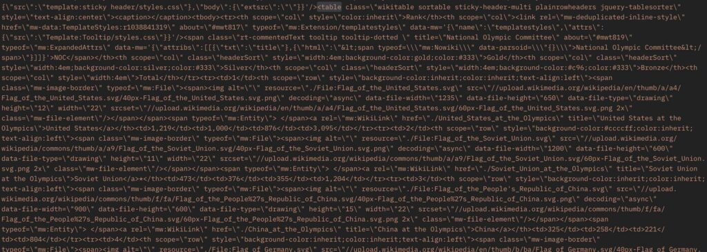 And here is that same table as a Wikitext BLOB that’s from the foundational Wikipedia APIs (also included in Enterprise APIs):