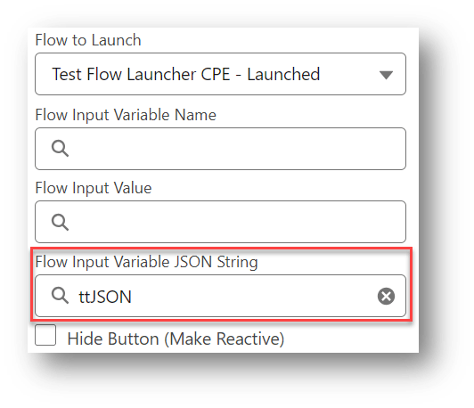 - Hide Button stays unchecked so a button will be used to launch the flow instead of reacting to a changed input
