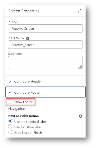 Because the Auto Navigate component is being used to advance to the next element, hide the Screen’s footer so the Next button is not visible.
