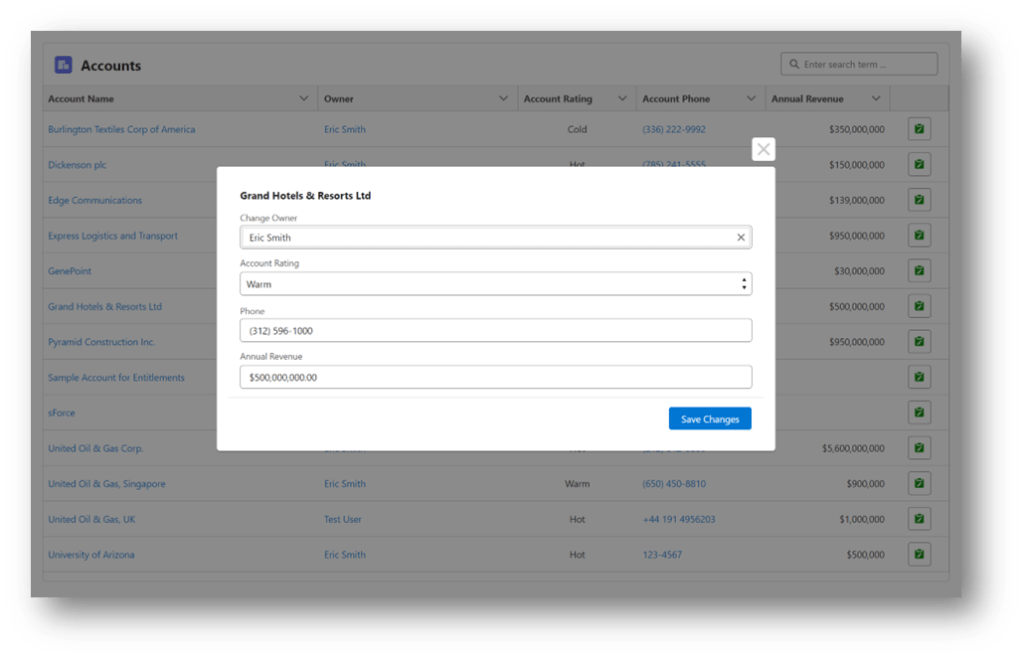 A standard Row Action is added to the Datatable so the user can pick which record they want to make changes to.