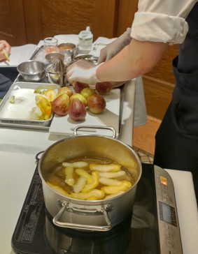 講師の先生がその都度テーマを決めて、トリビア知識を教えてくださって、それに合わせたテーブルコーディネートの紹介。そしてテーマに合わせてシェ・イノのシェフ達のオリジナルフレンチがいただけて食後簡単なお料理講習会もあるのです。盛り沢山。