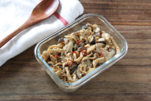 たっぷりきのこを味噌炒めにした、ごはんのおともです。