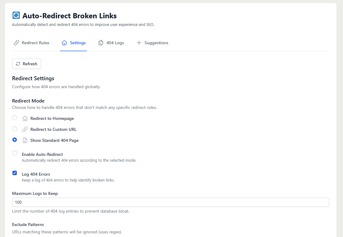 - New: Auto-redirect broken links with 404 logging and smart suggestions