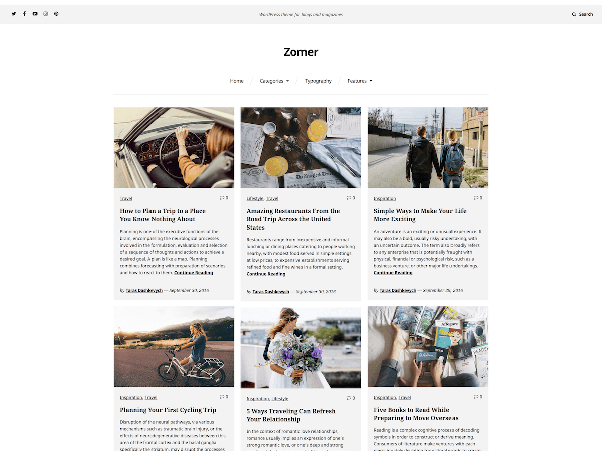 Zomer is a clean, light and elegant theme with a balanced design which will give your readers an immersive reading experience. Beautifully crafted and specifically designed to help you create a stunning magazine or personal blog.