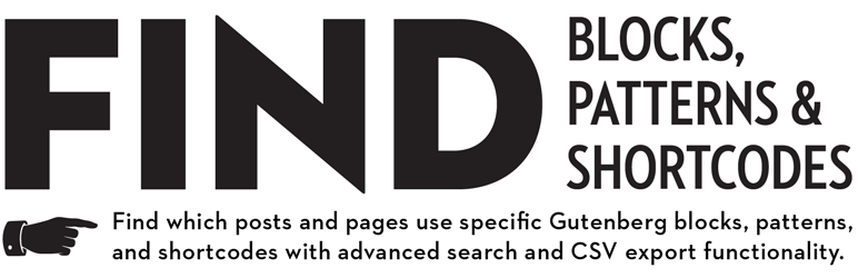 Find Blocks, Patterns & Shortcodes locates content containing specific Gutenberg blocks, with a CSV export feature perfect for audits & analysis.